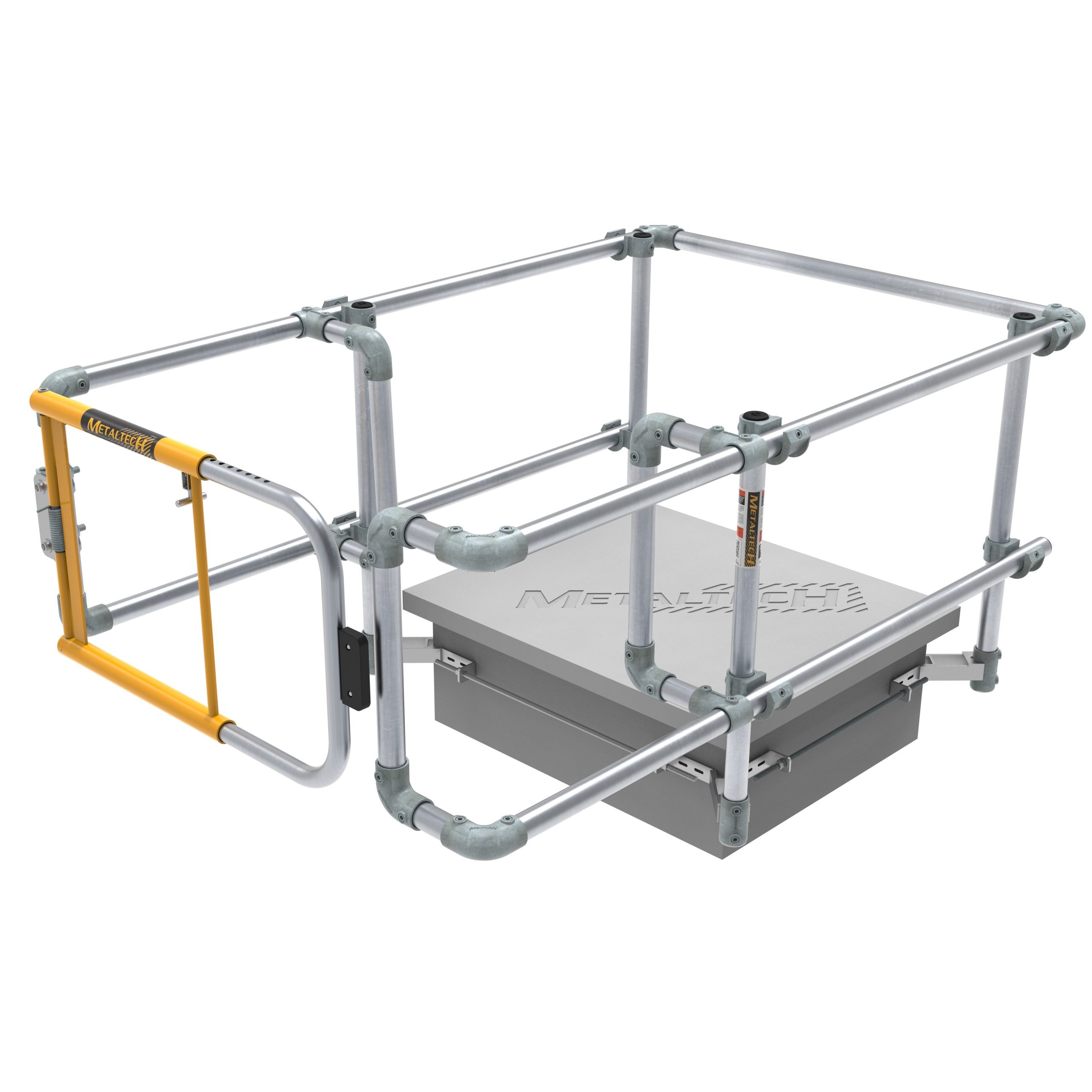 Les hauteurs des lisses (21 po et 42 po) respectent les exigences réglementaires. Des mains courantes peuvent être ajoutées pour faciliter l’accès et augmenter la sécurité. Ce garde-corps pour trappe Metaltech combine solidité, visibilité et conformité en une solution pratique et durable.